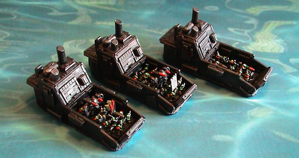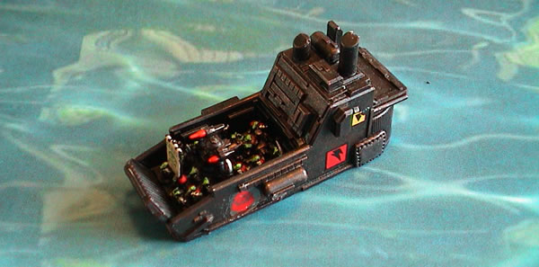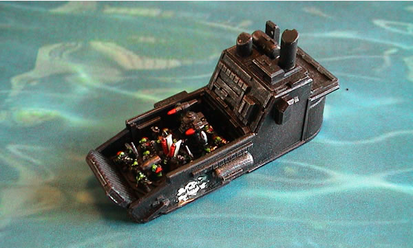 Original Landing Craft model was from Snapdragion Studios (now OOP) and has had some armour plates added made out of green stuff. The Orks are GW and are removeable.