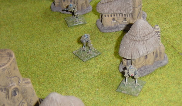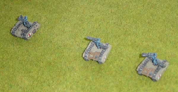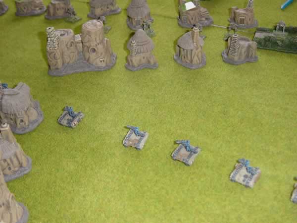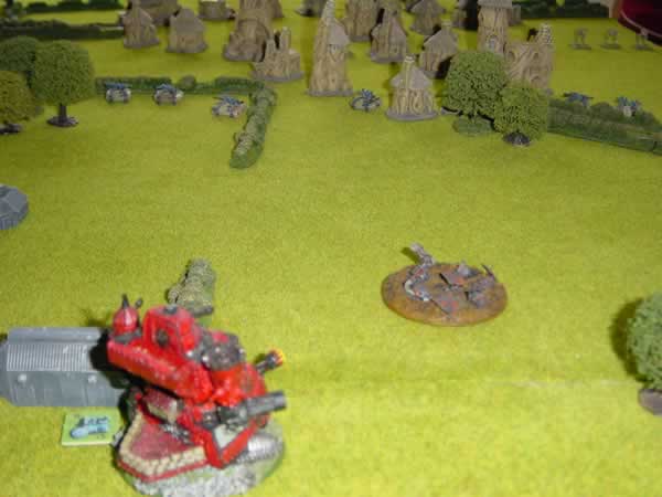 The Imperial reconnaissance patrol was able to add 30cm to its first move and quickly moved into the village. Consisting of Salamanders and Sentinels it was designed for speed and not hitting power.
