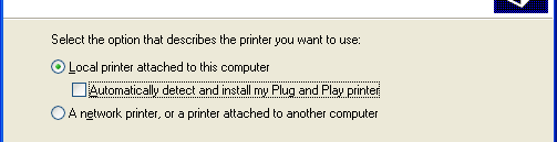 and that the Automatically detect and install my Plug and Play printer checkbox is OFF and then click Next.