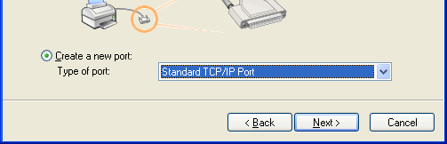 Click the Create a new port radio button, select Standard TCP/IP Port from the dropdown and click Next.