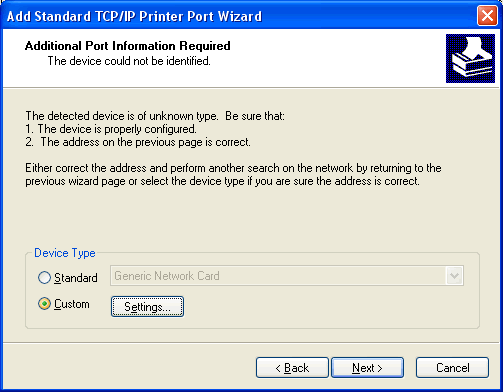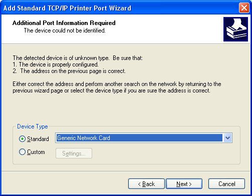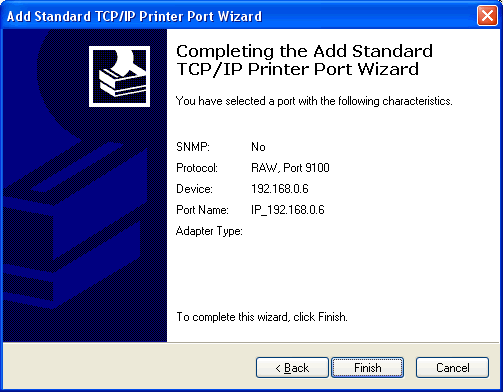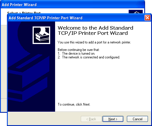 The "Add Standard TCP/IP Printer Port Wizard" will pop up.