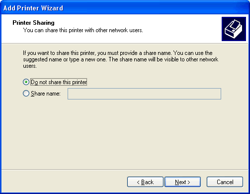 Click Next again because you don't want to share it through the Windows PC as it is already a shared printer.