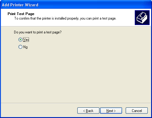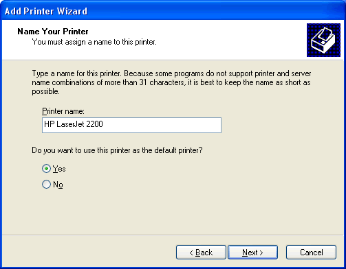 Decide if you want this printer to be the default printer for your XP PC. Click Next.