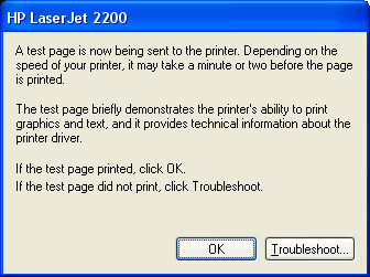 A test page will come out of the printer and you shouldn't need to troubleshoot.