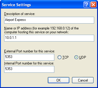 Opening port 5353 in the Windows XP Firewall to enable an XP PC with SP1 to configure the Airport Express and use AirTunes