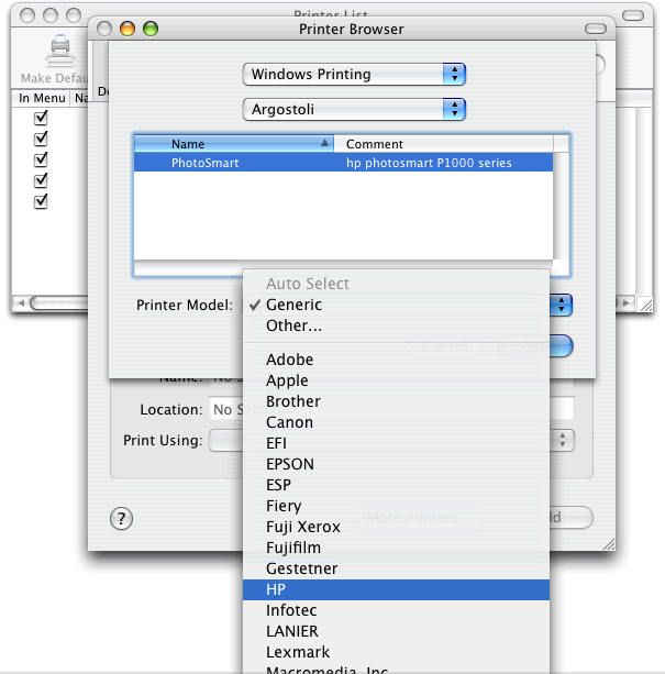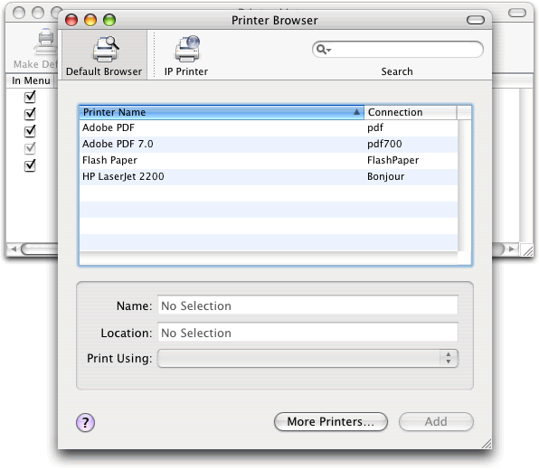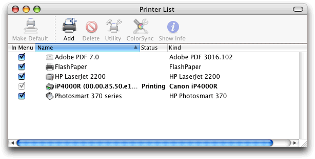 Your printer is now added to your printer list and can be used from applications. Remember that your Windows XP PC must be switched on in order to allow the Mac to print to it.