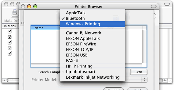 Printing to a printer on a Windows XP PC from a Mac running 10.4.x