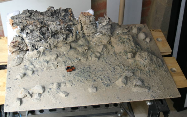 The first thing I did was add some small stones to the board, you should be able to see an Ork battlewagon for scale purposes.