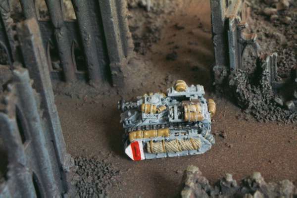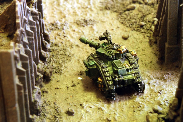 Imperial tanks rumble across the destroyed ruins of an Imperial city.