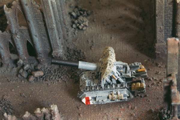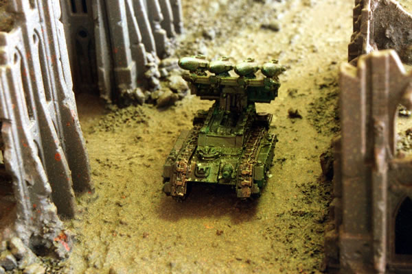 Imperial Basilisk moving through the rubble of an Imperial city.