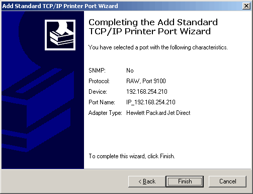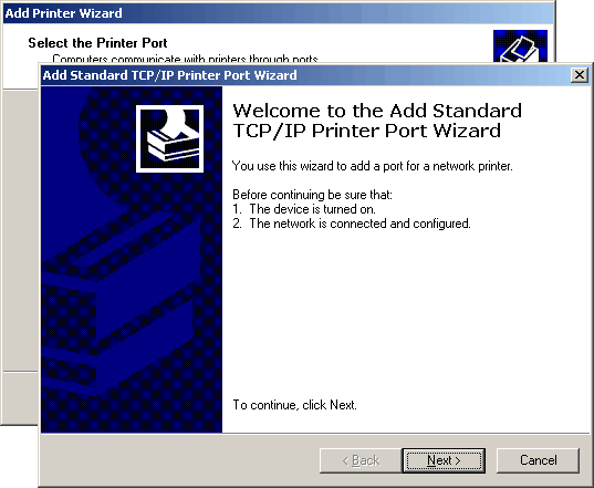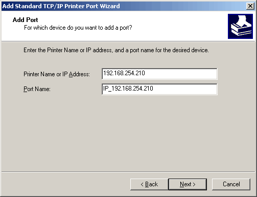 The "Add Standard TCP/IP Printer Port Wizard" will pop up.