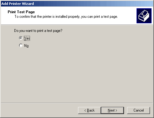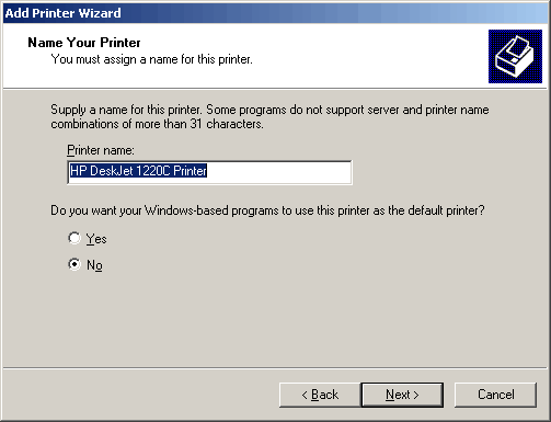 Decide if you want this printer to be the default printer for your Windows 2000 PC. Click Next.