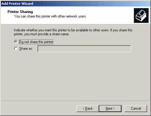 Click Next again because you don't want to share it through the Windows PC as it is already a shared printer.