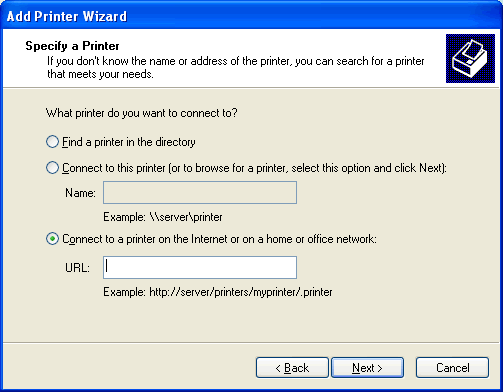 Check the third option Connect to a printer on the Internet or on a home or office network