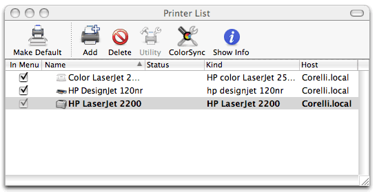 First check that your printer functions correctly on the Mac (in this example, the G5 is running 10.3.2).