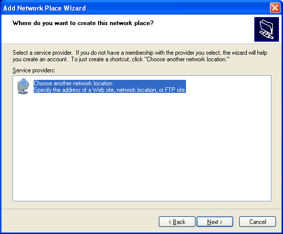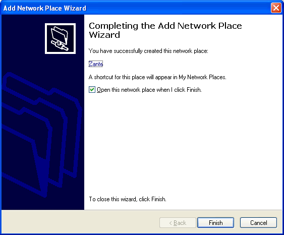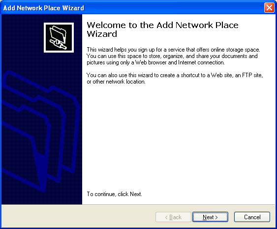 You will then start the Add Network Place Wizard