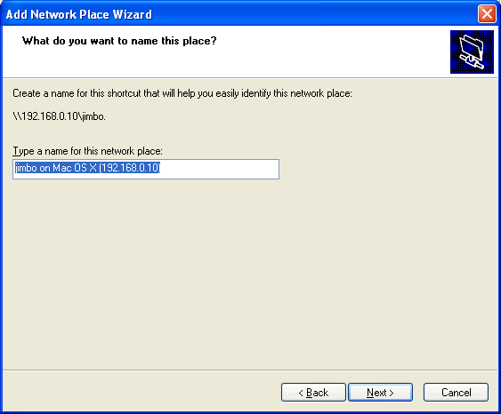 You will then be asked to Type a name for this network place: