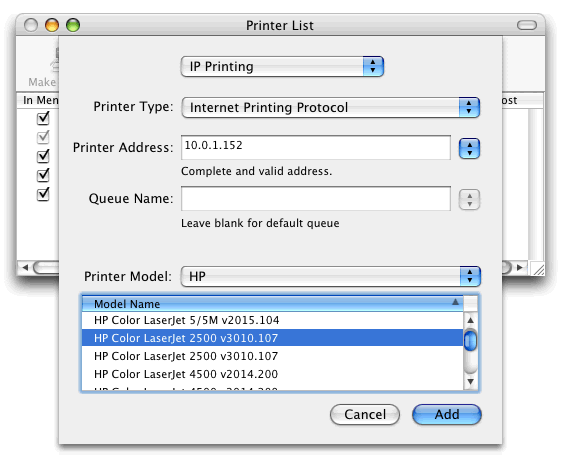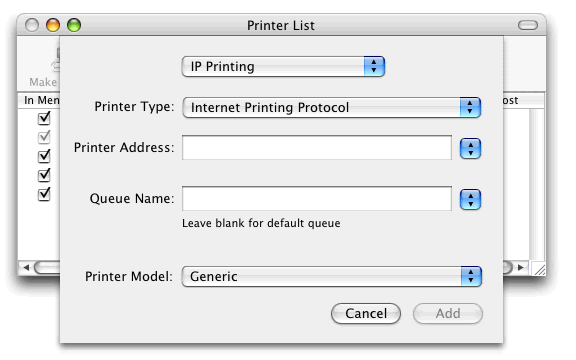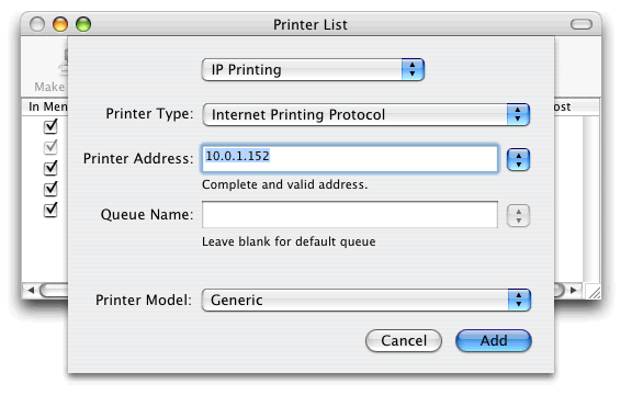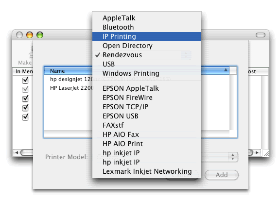 Printing to a network ethernet printer (which has an IP address) from a Mac running OS 10.3.x