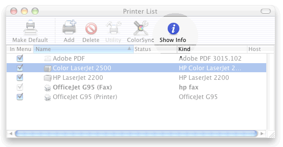 You may want to rename your printer, so select the printer in the list in the Printer Setup Utility and click Show Info.