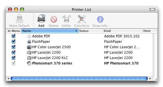 Then your Mac should start to search for printers and find the HP PhotoSmart 375 automatically unless you have assigned the printer a passkey (the default is no passkey).