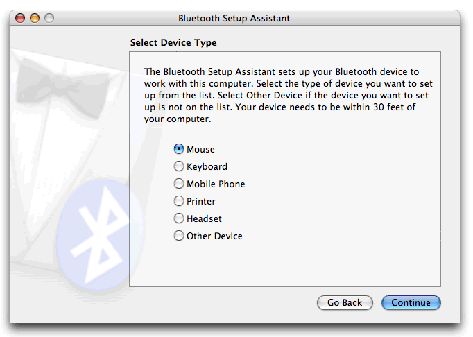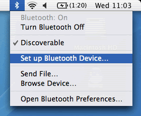 Click and select Setup Bluetooth Device... this will start the Bluetooth Setup Assistant.